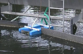 Der Schwimm- und Lackschlammsauger besteht aus einer horizontal auf der Wasseroberfläche schwimmenden Freistromrad-Tauch-motorpumpe mit seitlichen Schwimmkörpern und einem höhen-verstellbaren Saugmaul durch das die Wirkung noch optimiert werden kann.
